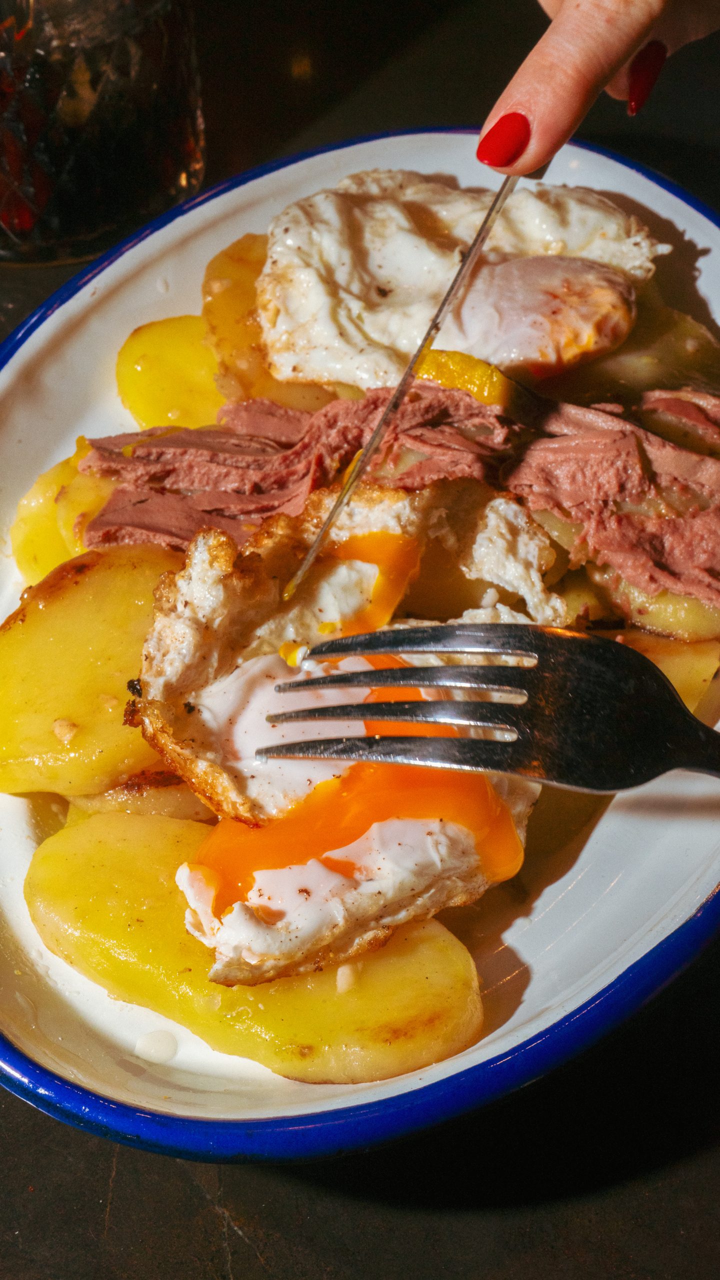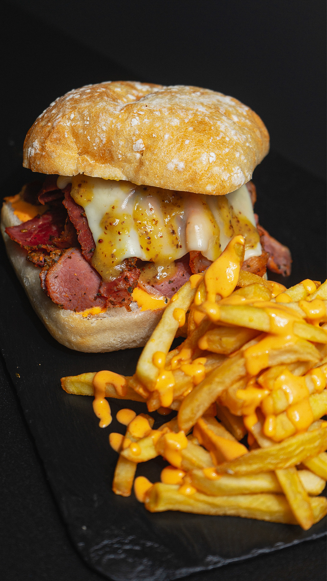 Aquí, la tradición se fusiona con la modernidad para ofrecerte una experiencia culinaria inigualable. Disfruta de una variedad de delicias, desde el famoso pastrami hasta un buen tapeo, acompañados de vermú y patatas asadas caseras. Todo esto puedes degustar tanto en nuestro acogedor interior como en nuestra agradable terraza.