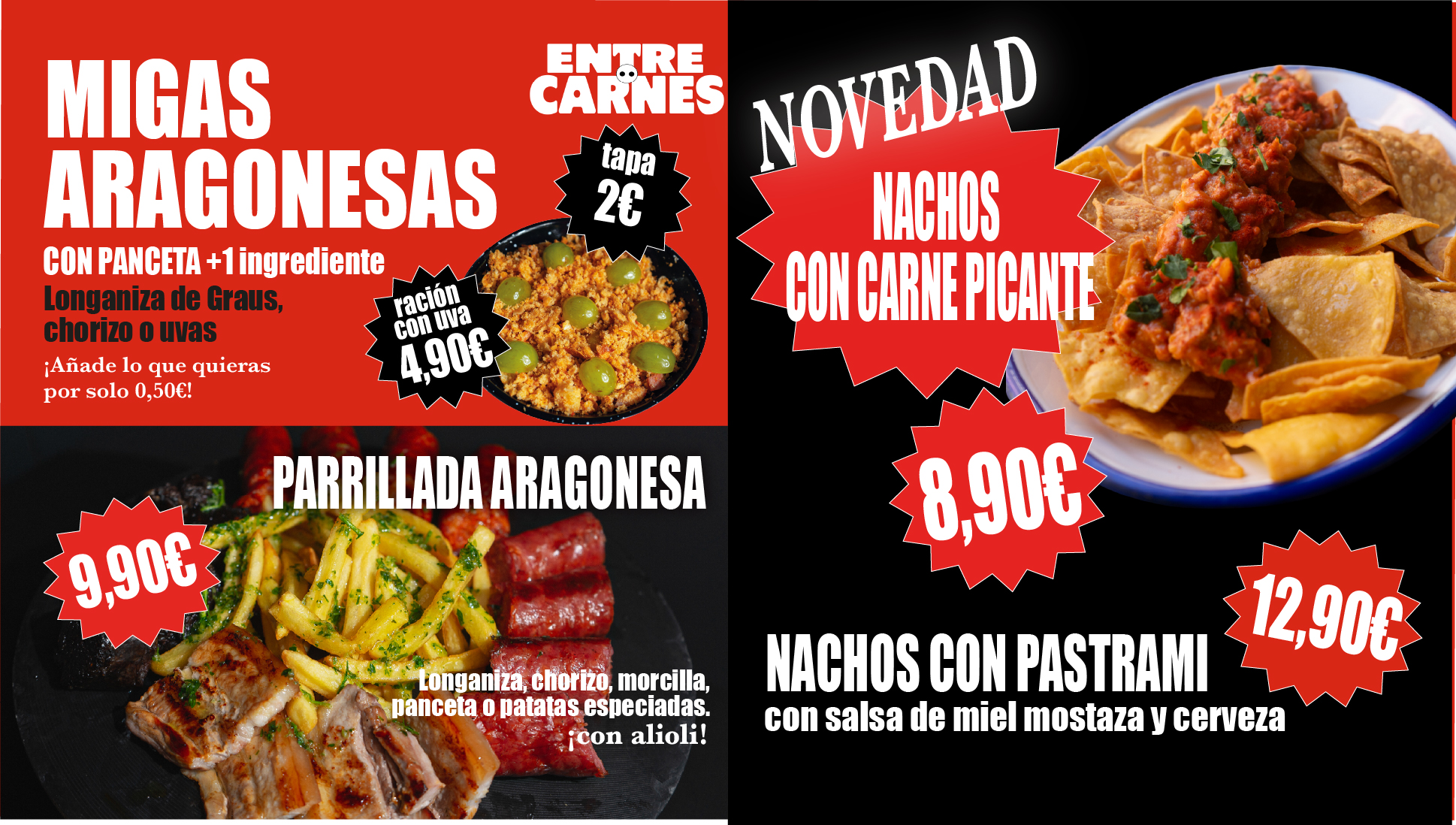 Pero no todo es carne en Entre Carnes. También pensamos en quienes prefieren opciones vegetarianas, por eso ofrecemos nuestras ensaladas de burrata y queso de cabra, frescas, sabrosas y perfectas para equilibrar la experiencia.