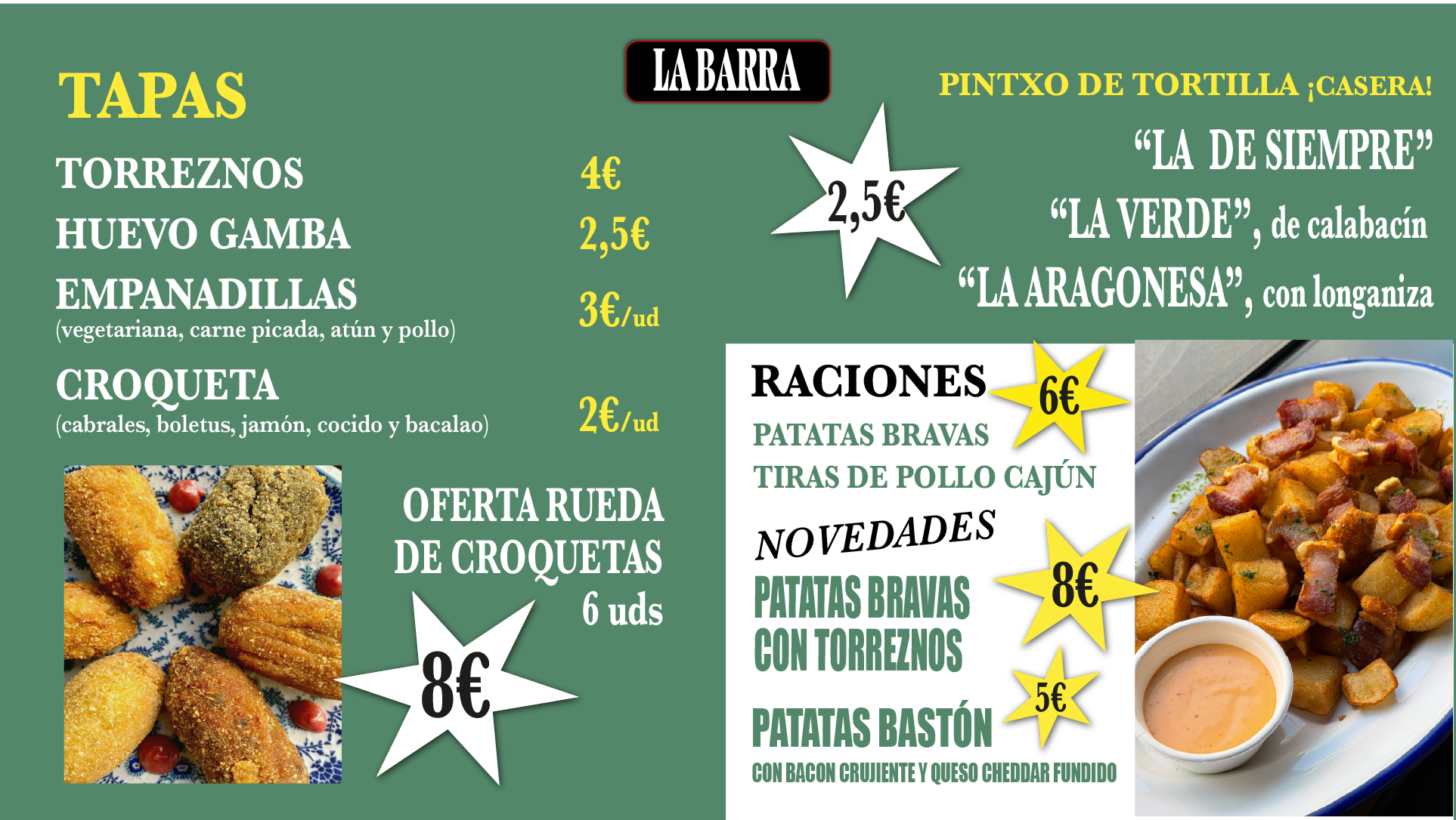En La Barra también ofrecemos ofertas especiales de desayunos, ideales para comenzar el día con energía y buen gusto. Y si tienes más apetito, no dudes en explorar el resto de nuestras opciones, siempre preparadas con ingredientes frescos y de calidad.